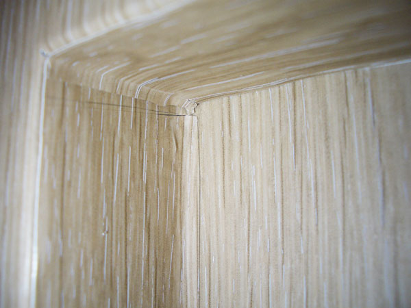端部の処理と重ねの順番が間違っています。パテで形成していないため出隅も歪です。